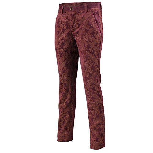 Mens Vintage Slim Fit Side Pocket Paisley Printed Soft Velvet Trousers Chinos