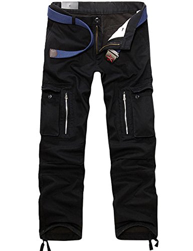 Menschwear Mens Fleece Lined Winter Cargo Trousers Winter Heavyweight with Belt JR012(32, Black)