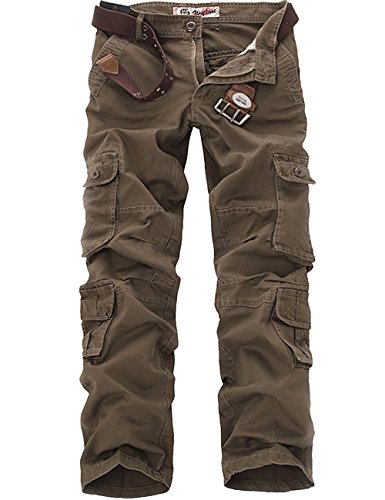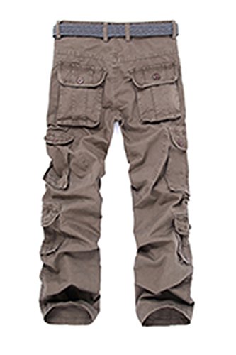 Menschwear Mens Multi Pockets Cargo Trousers Military Style with belt 025(28, Coffee)