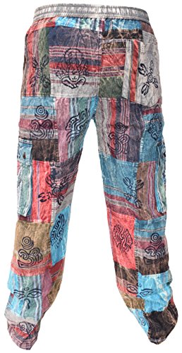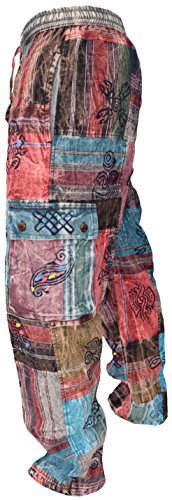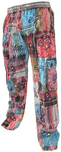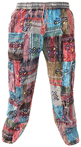 Little Kathmandu Men's Straight Loose Cotton Print Patch Casual Lounge Nepalese Trousers Pant Fleece Lined Patch Medium