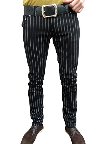 Mens and Womens Skinny Pin Stripe Jeans Trousers Mod Retro Vintage Drainpipe Pants (32 waist / 34 long leg)