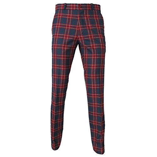 Relco Grey & Red Tartan Retro Sta-Press Mod/Skin/Golf Trousers Sizes 28 - 42